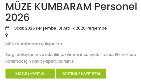 Sergi: MÜZE KUMBARAM Personel 2026 Etkinlik: 2026 senesine ait MÜZE KUMBARAM PERSONEL ziyaretleri